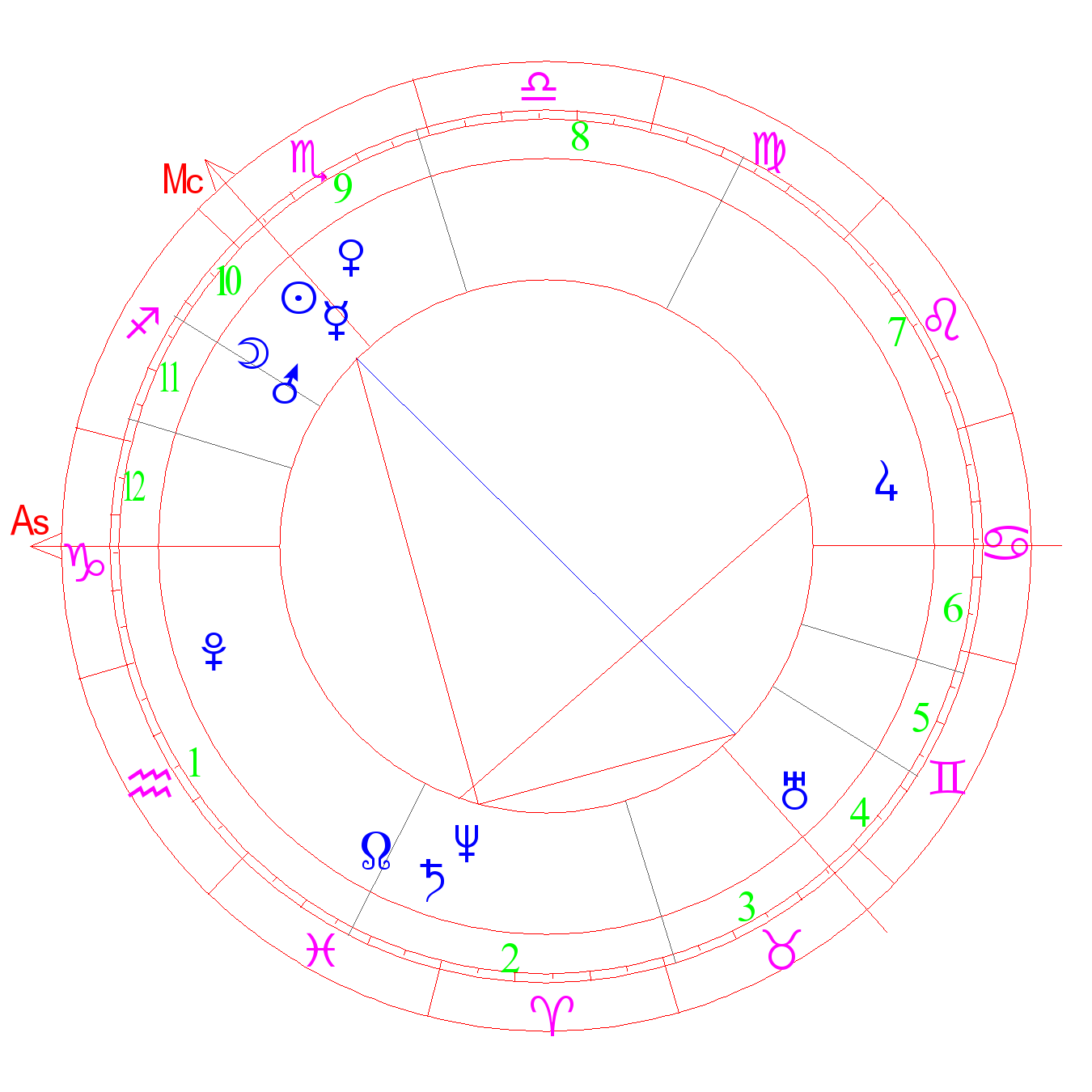 The degree of genius. Great creative abilities in the field of psychology, astrology, medicine. If the general constellation of the horoscope predisposes, there is a tendency to medicine and biology. Creative lifelong inspiration (ASA). Success, studies, well-being, danger of eye diseases (Kefer). Degree of brewers (deVore)