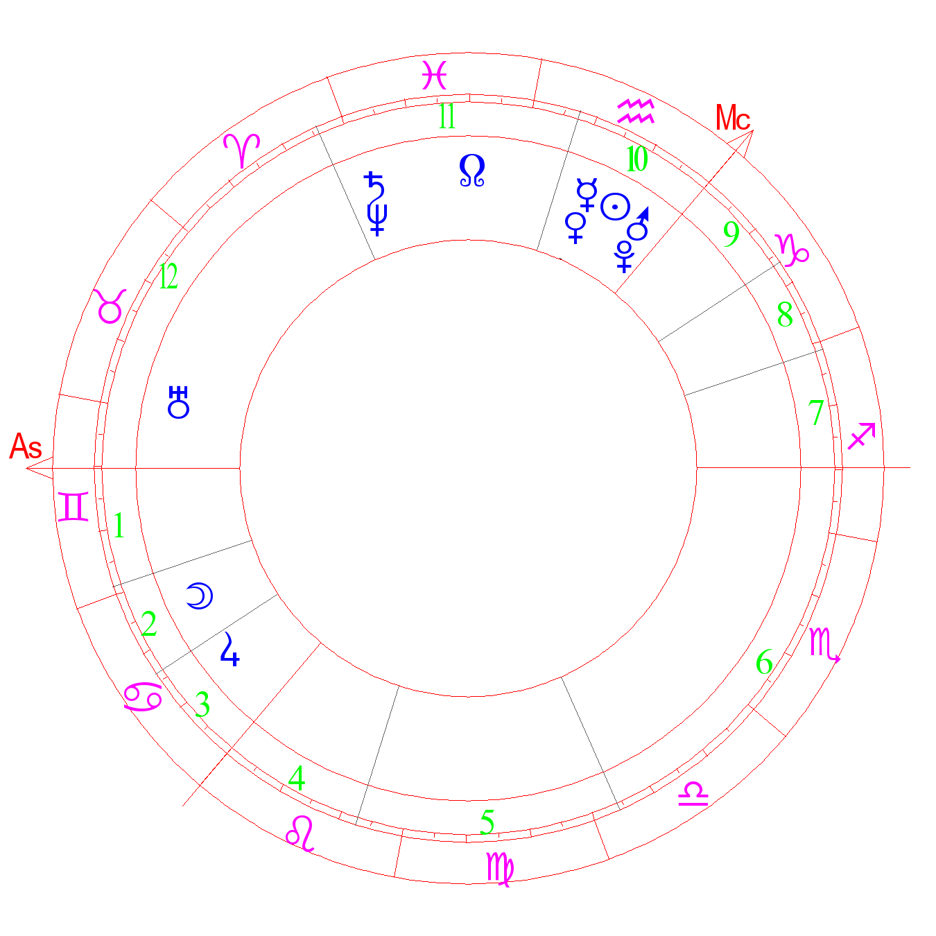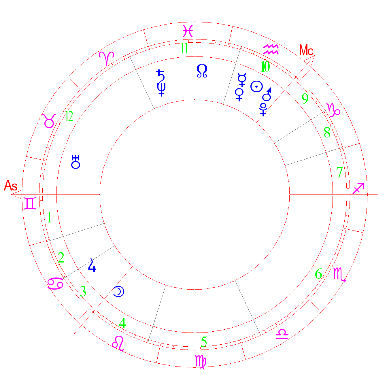 Energy, activity, but improvidence, extravagance, voluntarism, Can bring about homosexual tendencies. With strong expression of signs of Virgo, Capricorn, Aquarius - there is celibacy (ASA). Unreasonable energy, danger in professional activities and in battle, predominance of passions. The degree of the Sun (Kefer). The principle of things (deVore)
